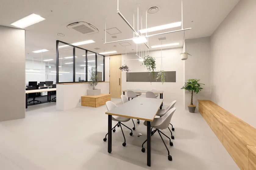 新しい店舗はオフィスと住宅の中間をイメージした内装。色数や装飾を最小限にすることでミニマルな印象を与えつつ、同時に木の温かみも感じられる空間に仕上げました。