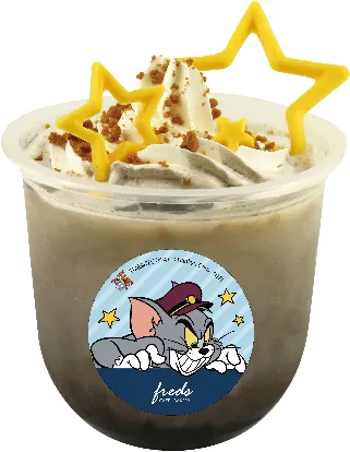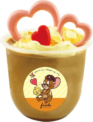 コーヒーにチーズケーキシロップをあわせてジェリーのカラーと大好きな“チーズ”を表現した、甘く濃厚なドリンク。
