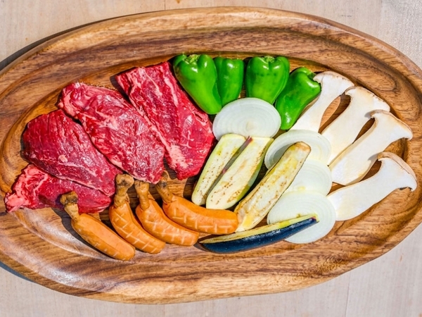 香川県産「オリーブ牛」を使用した最上級プラン。オリーブを食べて育った牛ならではの上質な脂の甘みとコクは、BBQの常識を覆します。
