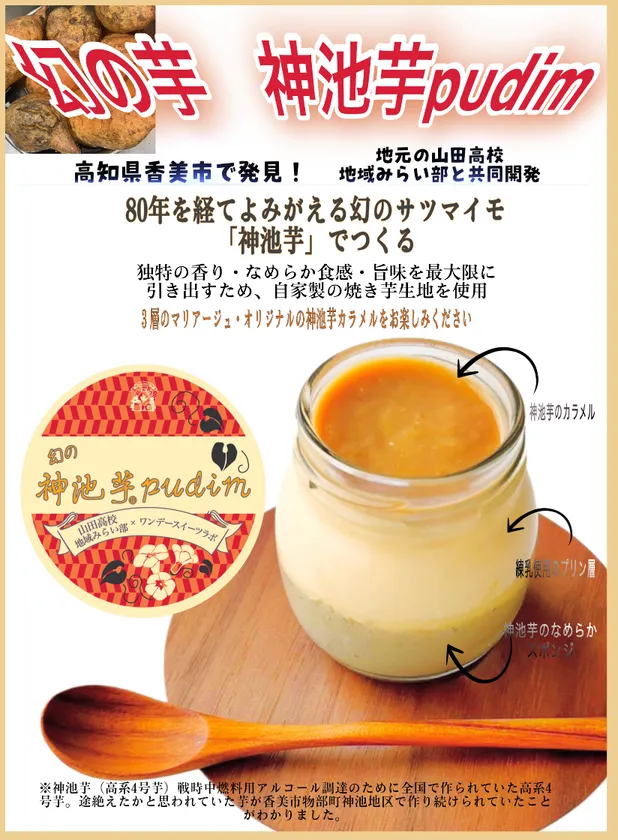 高知県香美市の希少な芋・神池芋(高系4号芋)でつくるプリンを 地元の学生と共同開発!「幻の神池芋pudim」を販売開始