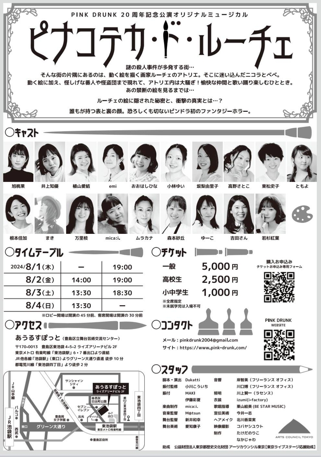 PINK DRUNK 20周年記念オリジナルミュージカル『ピナコテカ・ド・ルーチェ』が2024年8月1日 (木) 〜 2024年8月4日 (日)にあうるすぽっと(東京都 豊島区 東池袋 4-5-2)にて上演されます。