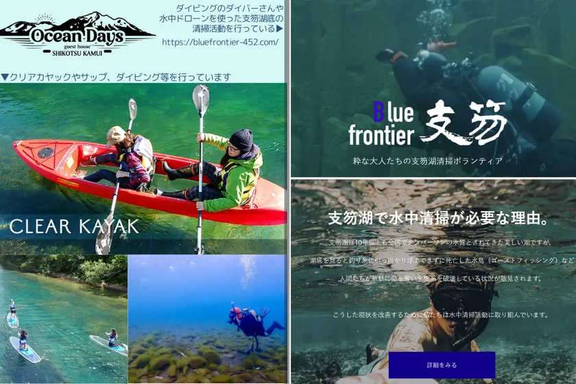 豊かな森が育む美しい湖。それに魅せられ集まる人々。当然ながら、人の集まるところに浮上するのはゴミ問題。この豊かな環境を守るための活動を大小さまざまな団体が行っています。特に、支笏湖の人気アクティビティ事業者である、カヌー事業の「支笏湖ガイドハウスかのあ(代表:松澤 直紀さん)」さん、カヤックやダイビング事業の「オーシャンデイズ(代表:板谷 貴文さん)」さんは、環境の<利用>と<保護>を考え、環境保全を第一線で活動しつづけています。この度開発中の「支笏湖Beer」も資源の<利用>をさせていただくだけではなく、<保護>につなげられる活動となるよう、販売がスタートできた折には売り上げの一部を環境保全活動資金として寄付をさせていただきたいと考えております。