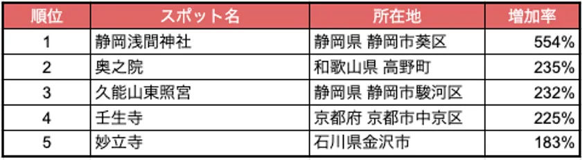 表:人流から読み解く新魅力スポットランキング2023「神社・寺院・教会」編
