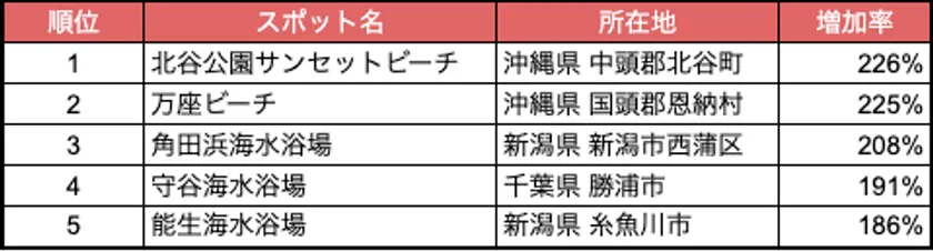 表:人流から読み解く新魅力スポットランキング2023「海水浴場」編