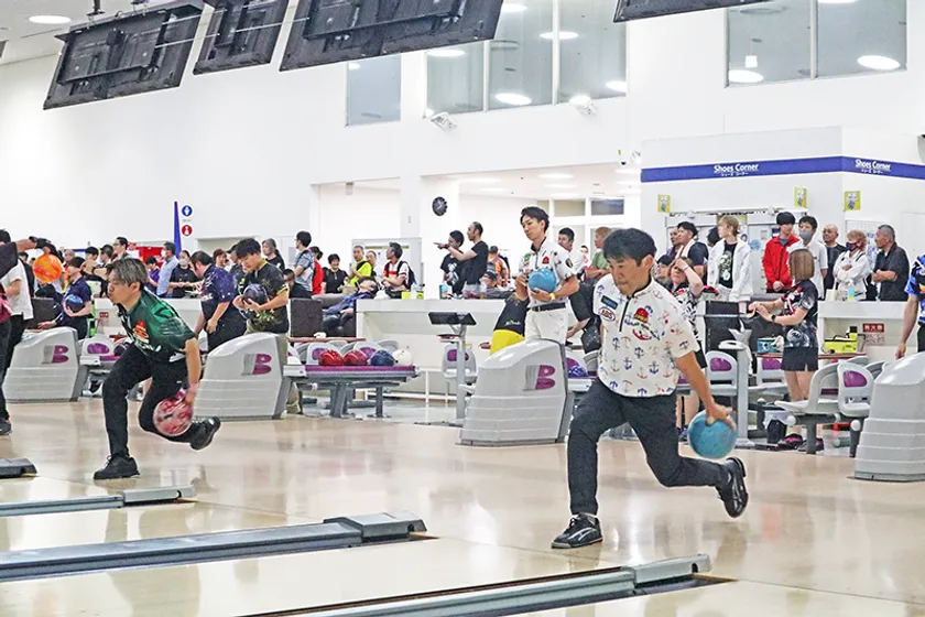 当日は、参加選手だけでなく、昨年よりも多くの観戦のお客様にご来場いただき、活気あふれる中、各レーンにプロボウラーとアマチュア選手が入り、アツい試合を繰り広げました。