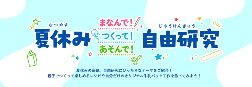 雪印メグミルク株式会社(本社:東京都新宿区、代表取締役社長:佐藤 雅俊)は、子供たちが夏休みの自由研究を楽しみながら学べる特設ページ『夏休み まなんで!つくって!あそんで! 自由研究』を期間限定で開設しました。