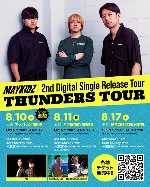 また、リリースに伴い、東名阪にてリリーススリーマンツアーも決定しており、PAM、Scott Murphy with 一瀬正和(ASPARAGUS / MONOEYES)と共に3ヶ所を巡る。チケットは、絶賛発売中!