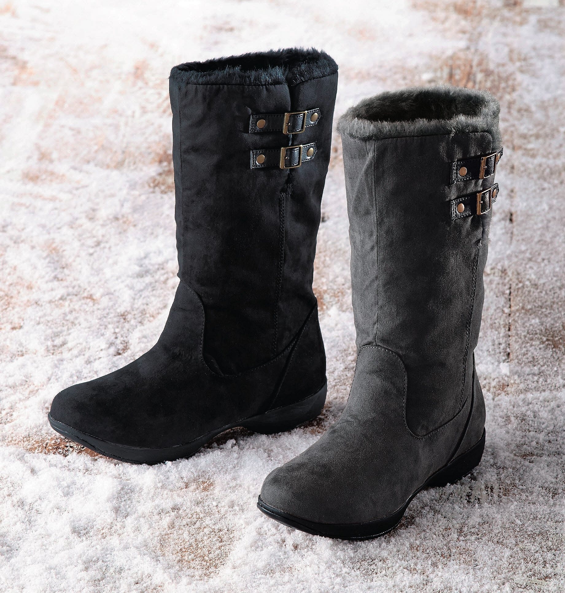 冬に映えるウォーム感のあるスエード調素材を使用、ブーツの筒部分の裏側と、取り外しができて且つ美脚効果を狙える2.5cmのインヒール部分には、ふわふわのボアを配して暖かさをキープします。履きやすいスナップ式開閉の履き口は、折り曲げても着用できる2ウェイタイプでコーディネートの幅が広がります。さらに、水深4cmで6時間の浸水テストをクリアした防水設計が大きな特長で、急な雨や雪にも対応します。底も滑りにくい仕様で歩きやすく、冬のお出かけを快適にサポートします。サイズは、S(22.5~23cm)・M(23.5~24cm)・L(24.5~25cm)、色は、ブラックとグレーを展開します。