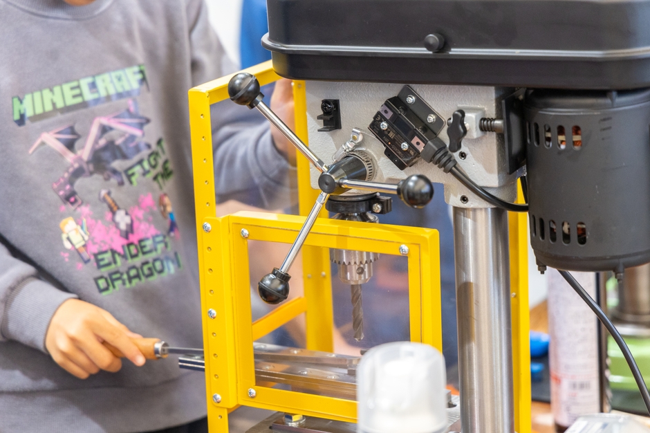 実際に工作機械(卓上ボール盤)を使用して、ナット作りを体験しよう!