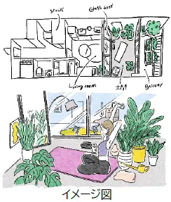 20~30代のウェルネスを意識した単身者。緑に囲まれて日々の生活を大切にしたいと考えている。限られたスペースでも独立した空間を設け、ヨガやガーデニングを楽しみたい。