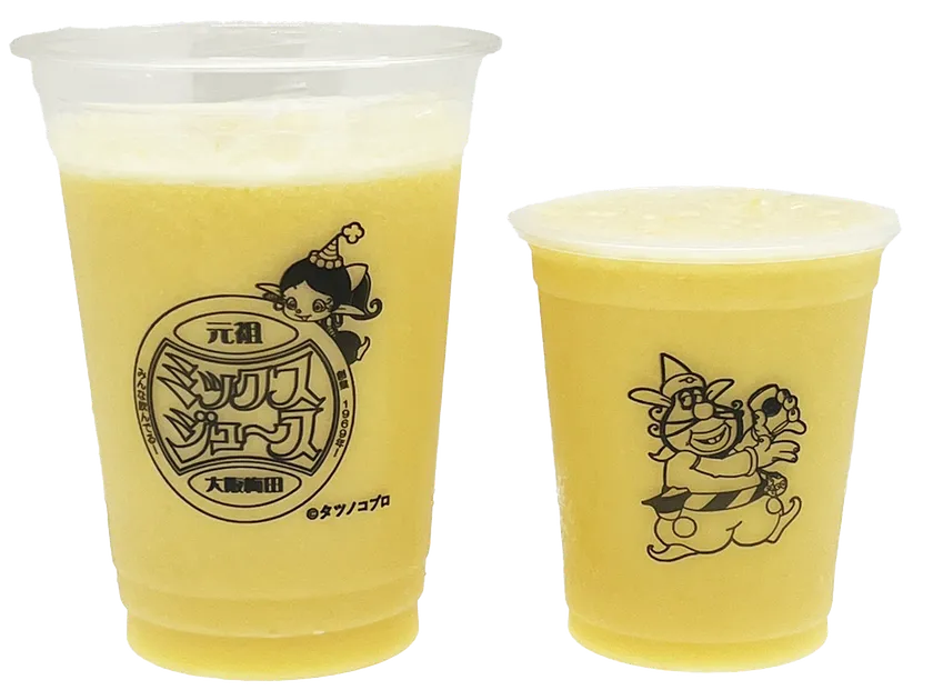 2024年に55周年を迎える「元祖大阪梅田ミックスジュース」ですが、実は大人気キャラクター「ハクション大魔王」と同級生。ふたつの55周年を記念し、2024年6月から2025年2月までの期間でコラボレーション企画を実施することとなりました。第三弾以降も、皆様に喜んでいただけるようイベント実施を重ねてまいります。