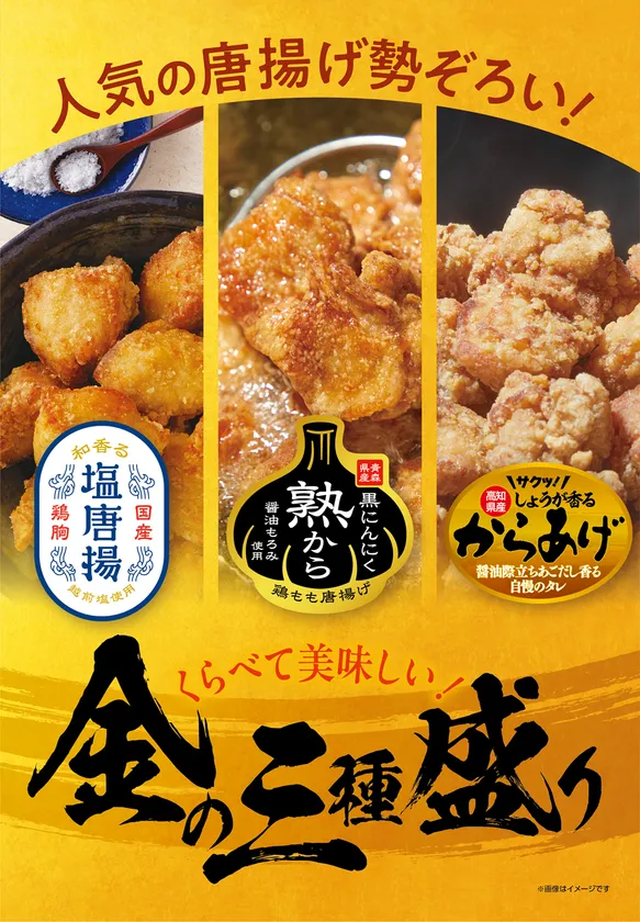 さっぱり塩味、コクの黒にんにく、さわやかな生姜、それぞれの唐揚げを楽しむことができる企画です。