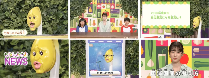 8月19日(月)より公開するWEB動画には、林修さんに似たキャラクター「もやしおさむ先生」(声:林修さん)が登場。高橋ひかるさんと子どもたちに「国産DAY」について詳しく解説する授業を開きます。日本の食の現状や対策についてクイズ形式で解説していくため、視聴者も一緒に楽しく学ぶことができます。