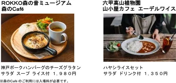 「ひかりの森~夜の芸術散歩~」開催日、会場となるROKKO森の音ミュージアムの「森のCafe(※2)」と、六甲高山植物園の「山小屋カフェ エーデルワイス」では、19:00(L.O.18:30)まで延長営業を行います。