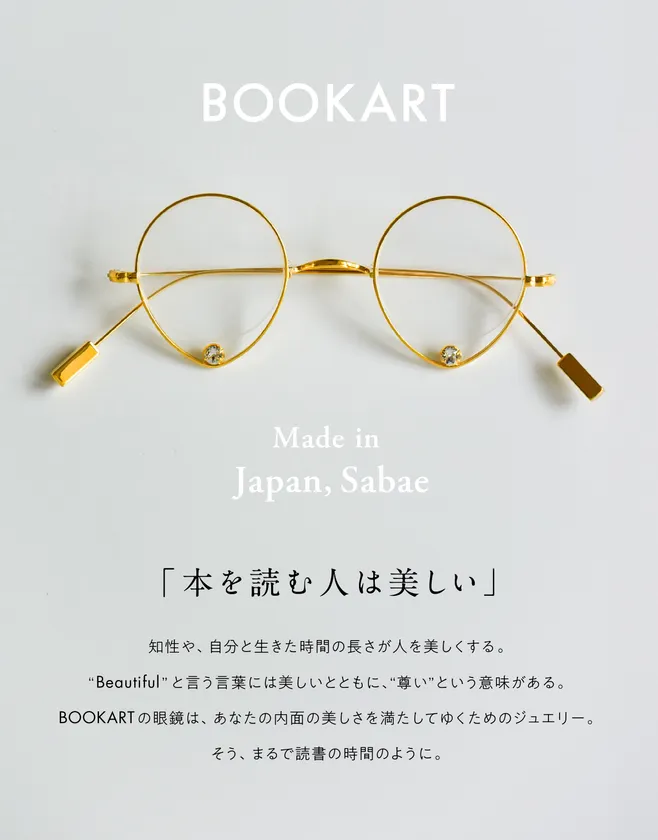 BOOKARTは、「本を読む人は美しい」をテーマにしたジュエリーグラスブランドです。2017年にグラフィックデザイナーのYuki Gotanda氏によって立ち上げられたこのブランドは、独自のデザインと高い品質で多くの支持を集めています。すべての製品は、眼鏡の聖地・鯖江の職人の手によって作られ、グラフィックデザイナーならではのコンセプトと細部へのこだわりが特徴です。BOOKARTはこれまでにも多くのメディアに掲載され、その魅力を広く伝えています。