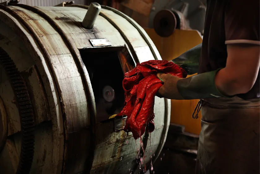 タンナーの知識と経験を活かし、製品の技術と融合させることで製品1つ1つに最適な革を選択することが実現できます。