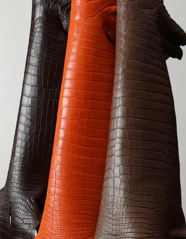 自社で調達するクロコダイルレザーは、全ての品種において高品質であり、革の質感、発色の良さにおいて高いレベルのクォリティを実現しております。