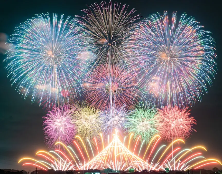 ちくせい花火大会は、2022年に始まった茨城県筑西市の秋の一大イベントです。市民だれもが誇れる花火大会を開催することで、観光誘客により地域経済の活性化はもちろん、地域への愛着を持ってもらいたいとの願いを込めて開催されています。茨城県が誇る花火師3社(山崎煙火製造所、森煙火工場、野村花火工業)の豪華コラボレーションが見どころで、音楽に合わせた20,001発+20発の花火が秋の筑西の夜空を彩ります。2023年大会では、映画「ゴジラ−1.0」とのタイアップで、ゴジラのテーマ曲と花火がシンクロするプログラムが話題になるなど、プロモーション企画も積極的に実施しているため、今後も年々来場者数の増加が見込まれます。
