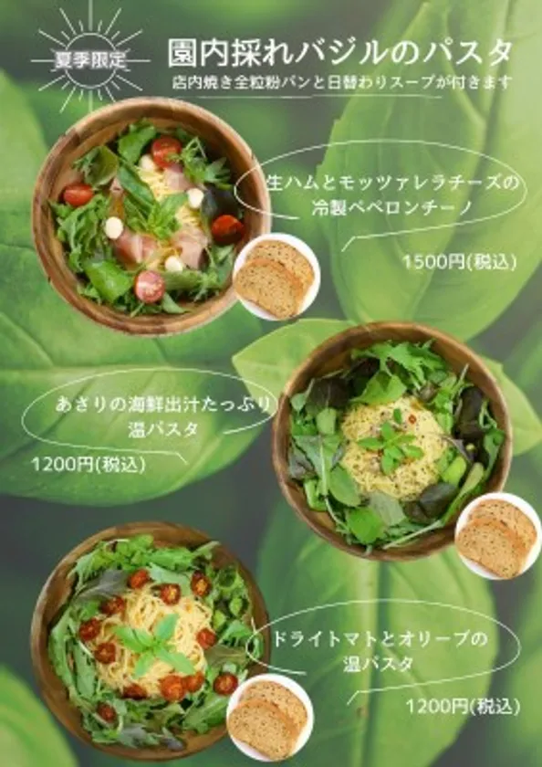 【夏期限定 園内採れバジルのパスタ】