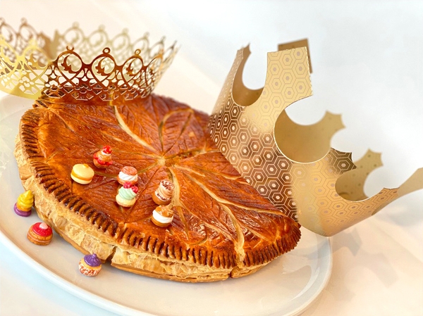 新年を祝うフランスの伝統菓子で、切り分けた時に中に隠された「フェーヴ(Fève)」という小さい陶器の人形が当たった人は、その一年幸運に恵まれるといわれています。
