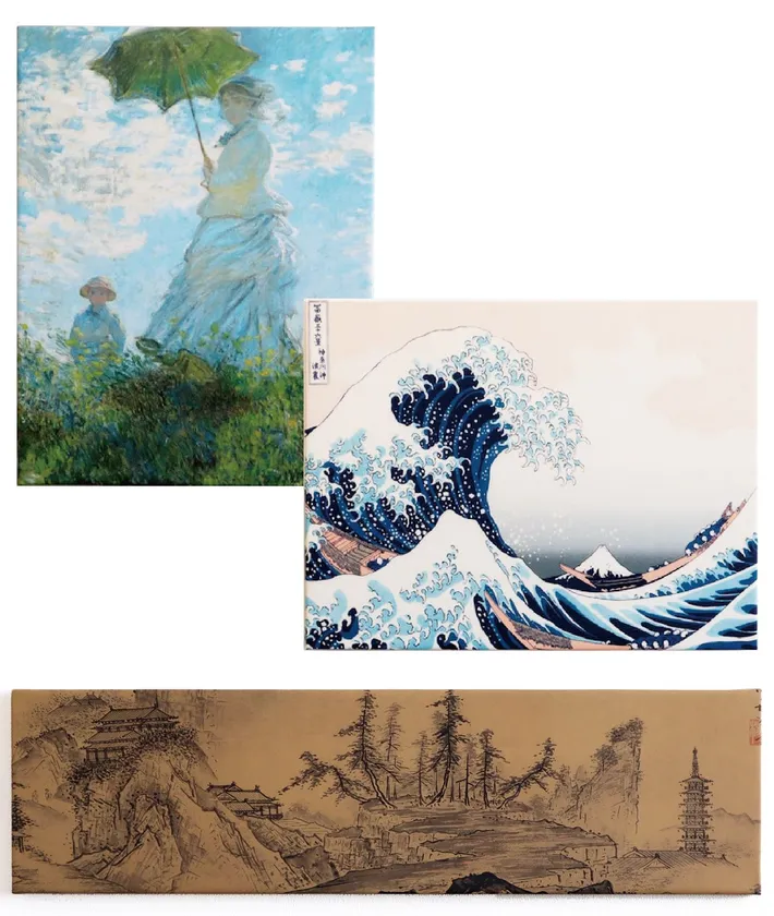 MOSHA-PROは、グラビア印刷技術を用いて絵画を「模写(=複製)」するプロジェクトで、アートを通してグラビア印刷の価値と可能性を広げることを目的としています。このプロジェクトでは、雪舟の「山水長巻図」やクロード・モネの「散歩、日傘をさす女」など、高難度の絵画のグラビア印刷に挑戦してきました。