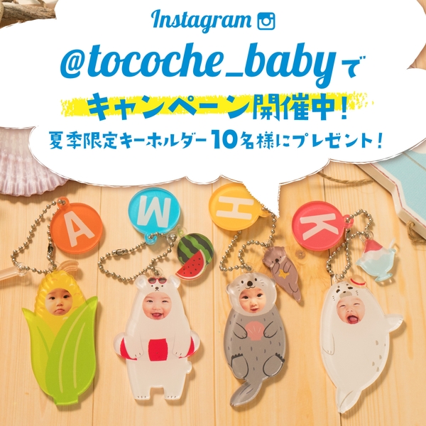 きぐるみキーホルダー夏季限定デザイン」追加を記念しまして、現在tocoche(トコシェ)のInstagramアカウント(@tocoche_baby)においてプレゼントキャンペーンを開催中です。