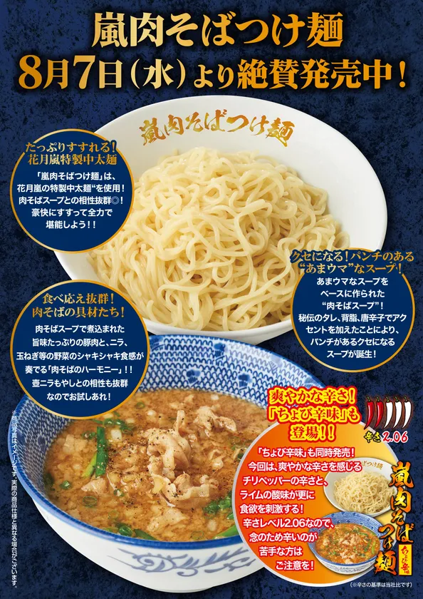 嵐を呼ぶ肉そばが、つけ麺となって新たな旋風を巻き起こす!! 『嵐肉そばつけ麺』 8月7日(水)より期間限定で絶賛販売!