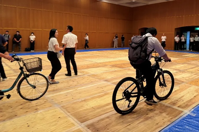 講演後は自校で実践している交通指導についてと、生徒家庭(保護者)への理解を深める方策についてワークショップも行われ、高等学校の教職員と希望者には、電動アシスト自転車等の見学・体験を行いました。ルールや自転車の車体自体の安全性についても改めて理解いただき、教職員の皆様が改めて自転車通学の安全指導について考える機会となりました。