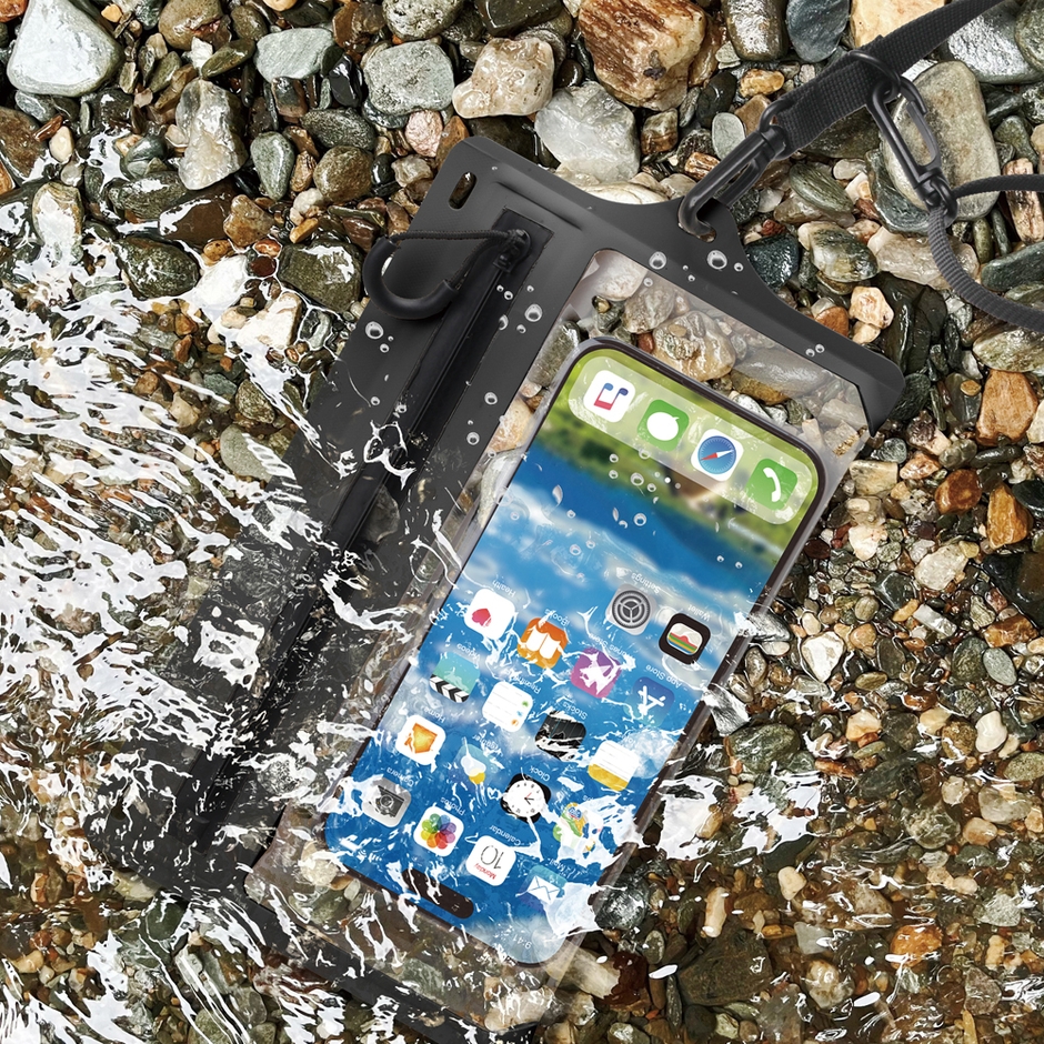 冬のスキーや、ハイキング、登山、キャンプ、野外フェス、雨の日の屋外スポーツ観戦、夏場の水辺でのレジャーなどで、お使いのスマートフォンやデジタルガジェットを水から守ります。