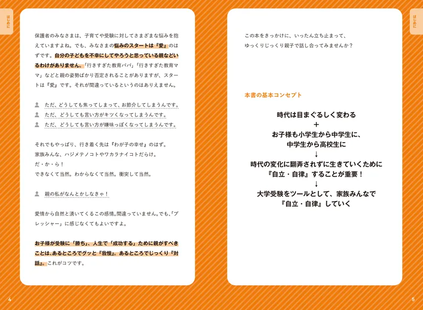 本書では、親子のコミュニケーションを見直し、大学受験の成功をサポートするための具体的な方法を紹介。親としてどう子どもを支えるべきか、どうやってモチベーションを高めるか、そして最終的にお子様が後悔のない人生を送るためのガイドブックです。