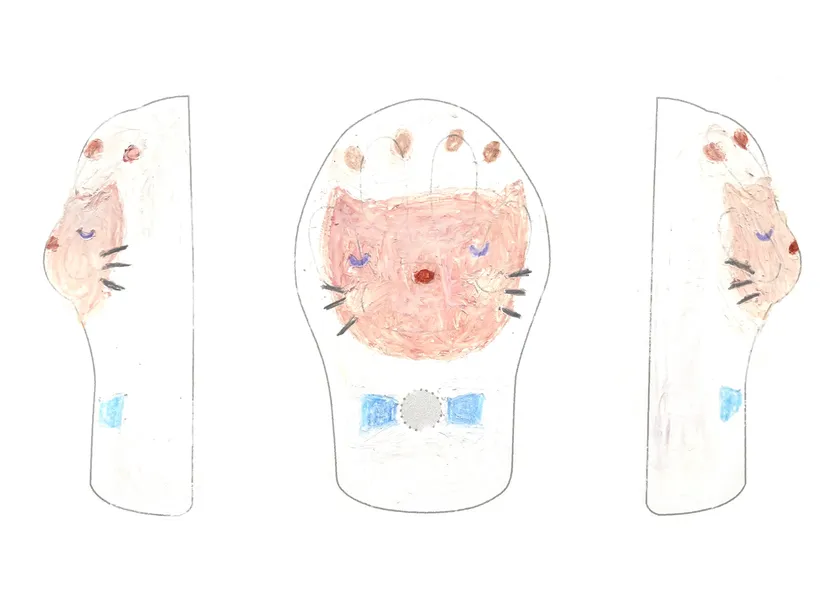 独創性の項目で高ポイントを獲得し見事グランプリに輝いた宇山さんの作品。応募シート全体でデザインの楽しさを表現してくれました。色違いでバリエーションの可能性を見せてくれた点も評価のポイントとなりました。