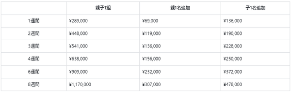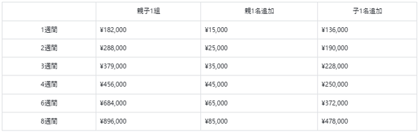<親子1組当たりの金額※親御さまはレッスンを受けない場合>