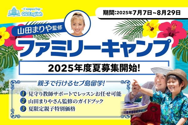 【親子で楽しめるセブ島留学】今年の夏、山田まりやさんが手がける親子向け特別プラン「ファミリーキャンプ」を開催します!