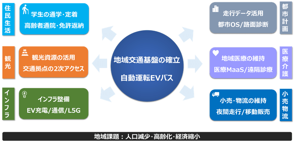 本出資を契機に、地域交通維持や2024年問題といった社会課題解決および地方創生の実現に貢献するとともに、政府が実現をめざす2025年度を目途に50か所程度、2027年度には100か所以上で自動運転レベル4の移動サービスの実現に貢献します。