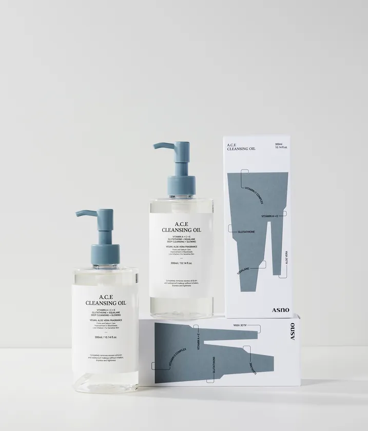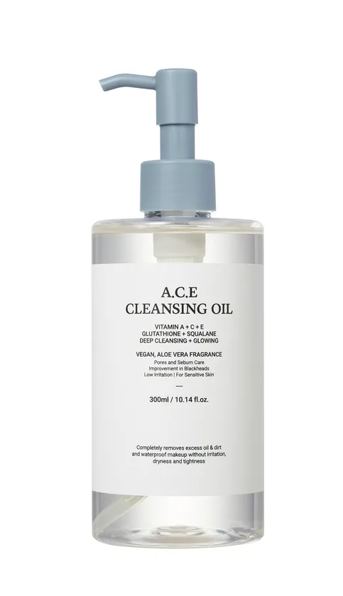 EVEヴィーガン認証を取得したA.C.Eクレンジングオイルは、6種類の植物オイルを配合し、メイクや汚れを優しく落としながら、グルタチオンやビタミンA、C、E成分とナイアシンアミドの抗酸化作用で不安定な肌トーンを整え、潤いを与えます。