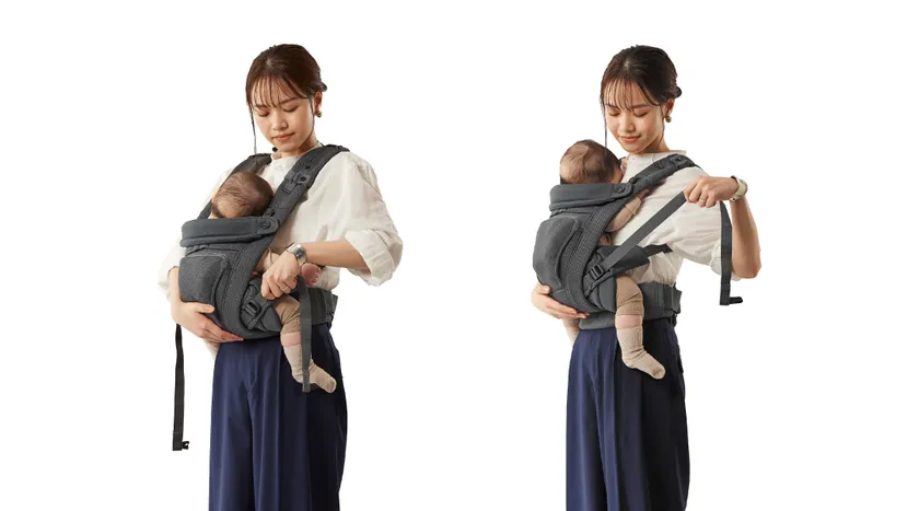 一般的な抱っこひもは、サイズ調節する際に「使用者と赤ちゃんの胸を押し付ける構造」のため、着け心地が悪いと言われていました。PULUAのサイズ調節は、「おしりから引き上げるだけの構造」なので、簡単に心地よい密着抱っこが出来ます。
