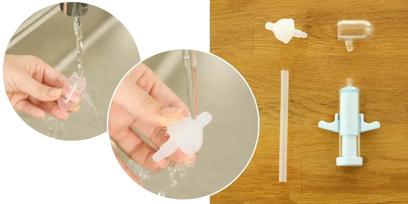 お鼻に直接あてるノズル部分は、やわらかなシリコン素材です。小さなお子様のお鼻にしっかりと密着するので、吸引力を逃しません。