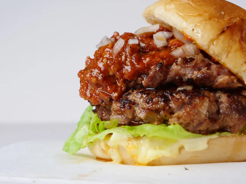 創業150年老舗精肉店監修!焼肉屋が本気でつくったハンバーガー。独自配合のブレンドパテと自家製マスタードソースがポイントです。