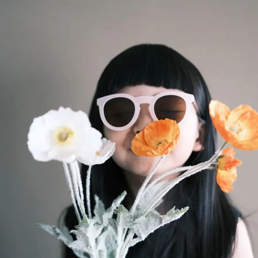 台湾発の世界的メガネブランド「LE FOON」は、目から入る紫外線カット率約99%のUV400子供用サングラスを展開しています。子供が見えにくくならないよう薄い色のポリカーボネートレンズを採用、ガラスレンズやプラスチックレンズよりも薄く軽量です。ガラスやプラスチックに比べて最大10倍で耐衝撃性にも優れています。活動的な子供のために、メガネの前面フレームとテンプルという耳にかけるパーツを繋ぐ部分が柔軟に広がる構造で壊れにくくなっています。