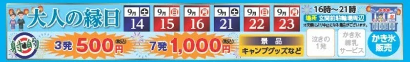 大人の射的!3発500円、7発1,000円