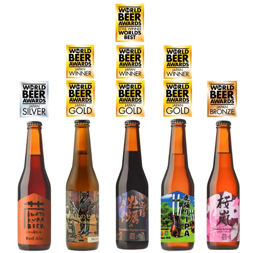 岩手県一関市の酒造会社「世嬉の一酒造株式会社」が手掛けるビールブランド「いわて蔵ビール」がイギリスで開催された<WORLD BEER AWARDS 2024>にて5品種出品し、全品種が入賞いたしました。うち、三陸牡蠣のスタウト(オイスタースタウト)が、スタイル別世界1位(World's Best Beer)に選ばれました。