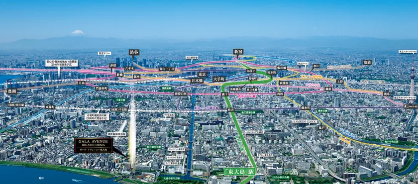 最寄りの「東大島」駅からは、都心を横断しながら新宿へとダイレクトに繋がる都営新宿線が利用可能。東京や大手町、日本橋、銀座といった再開発で賑わうエリアへも軽快にアプローチできるなど、多彩な路線を使いこなせる利便性の高さが魅力です。ポテンシャルの高いアクセス網に恵まれ、機動力あふれる日常を謳歌することができます。