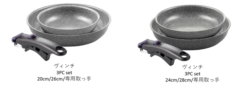取っ手が外せるフライパンセット「ヴィンチ」シリーズ