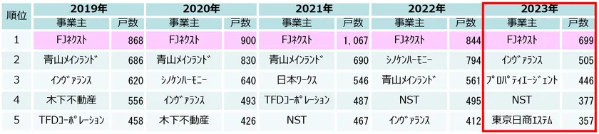 2023年首都圏投資用マンション供給ランキング 5年連続で第1位を獲得