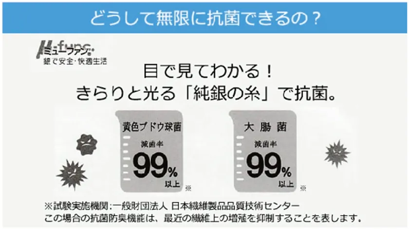 1. 半永久的に抗菌するミューファン(R)で快適な空間を楽しめる。