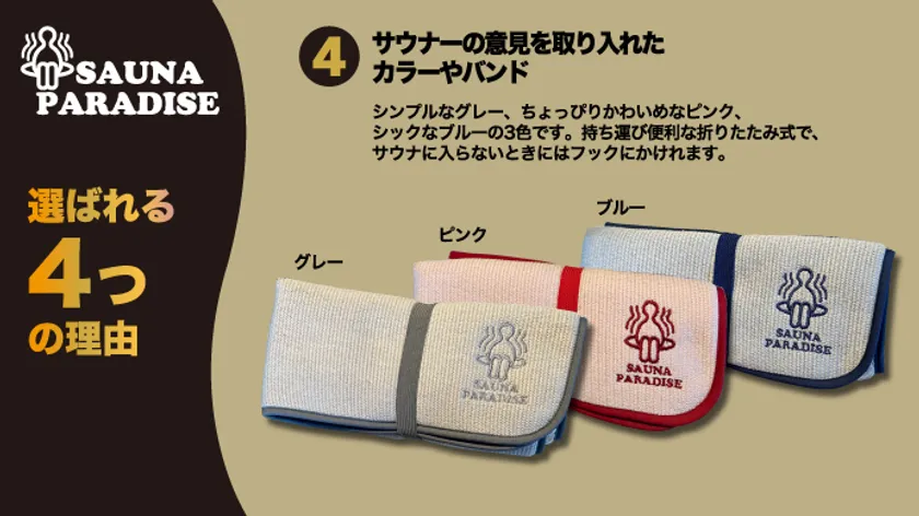 以降はサウナハットやターバンあらゆるサウナシーンでの活用が出来る商品を開発挑戦していく予定です。