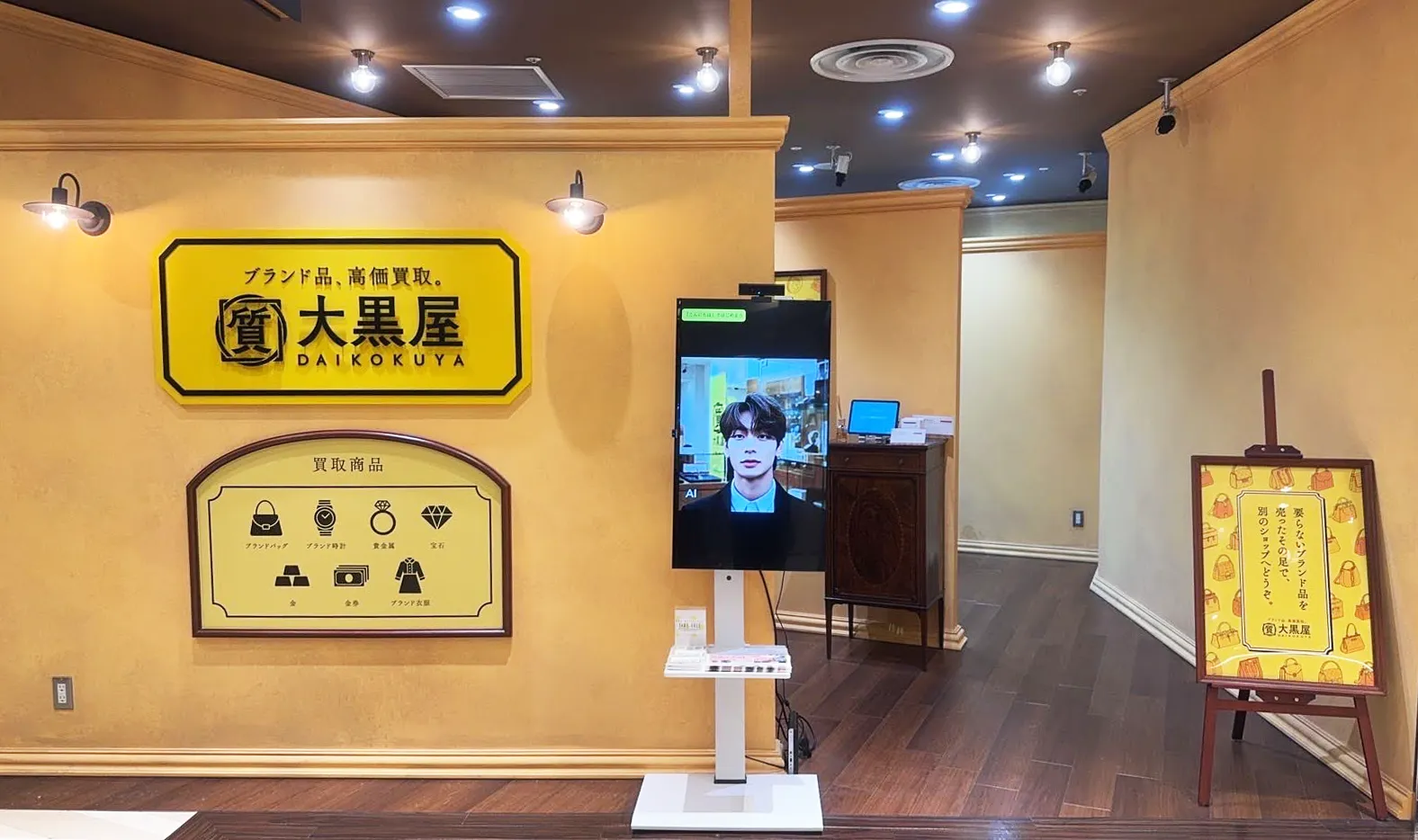 大黒屋仙台パルコ店では、試験的に「DAI」を導入する実証実験を開始しております。店舗前をご通行されるお客様や店舗内でお待ちのお客様にご利用いただくことで、より手軽でスムーズな新しい買取体験の提供を目指します。