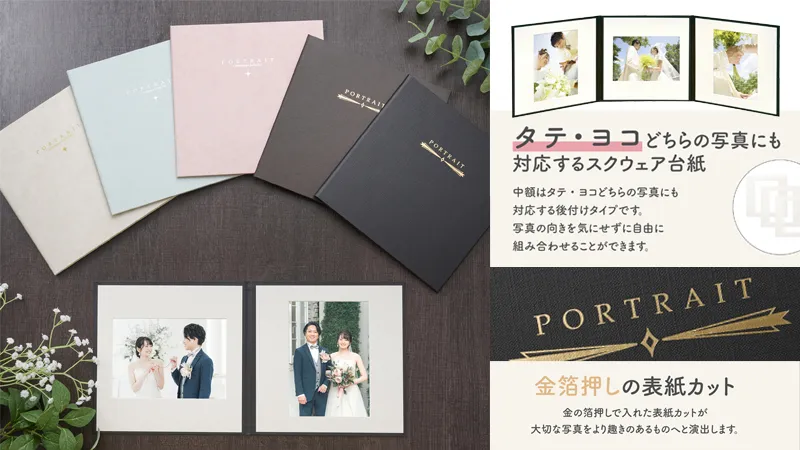 タテ・ヨコどちらの写真にも対応するスクウェア台紙