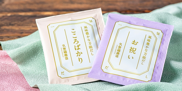【新発売】「こころばかり」「お祝い」メッセージ入り!プチギフトにおすすめな一包入りの「風味豊かな万能だし」を発売【久世福商店】