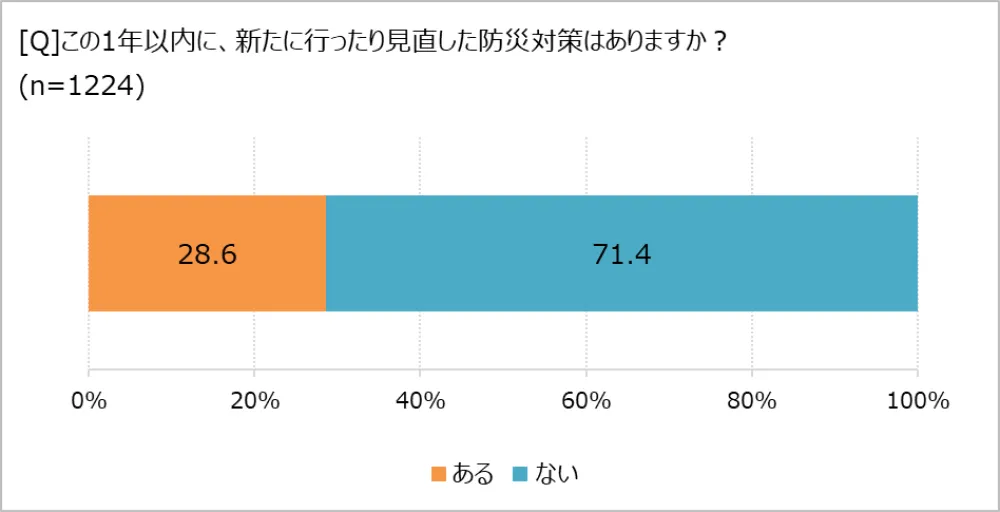自然災害にたびたび見舞われている日本。しかし、年明けの大きな地震後も「防災対策」を自分ごととしてとらえられている人は多くないよう。今回の調査では、ふだんから災害についての情報を収集している人のほうが、していない人よりも、水や食料のストックなどの対策ができている割合が高いことも明らかになりました。防災意識を高めるのはなかなか難しいものですが、まずは対策情報に触れるように意識することから始めてみるのがいいかもしれませんね。